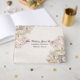 En delikat blommigt med mjuka vattenfärger med ro. Den här gästen bok är en del av en komplett bröllopsinbjudan.