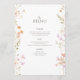 Den här förbluffande bröllop-menyn har en delikat vattenfärgsdesign i mjuka pasteller, som är vackert placerad på en gräddbakgrund för ett tidslöst utseende av eleganten. Perfekt för trädgårdsbröllop eller romantiska receptioner, designen belyser dina måltider med förfinad typografi. Den här menyn fungerar både som en praktisk guide för dina gäster och som en viktig fråga från din speciella dag. Anpassa den med dina unika detaljer så att du kan komplettera ditt bröllop-tema sömlöst.