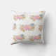 Fint dekorativ kudde försedd med delikat vattenfärgad blomma mönster i pastellernas rosa och persikofärgad färg med grönt och blå/grått blad på vit bakgrund. Mycket dekorativt och romantiskt stil.