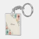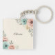 Den här nyckelkedjan för personlig har ömtåliga skisserade blommor med mjuk vattenfärg struktur i rosa, myntgrönt och blek gult.