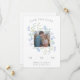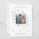 En söt blommigt bröllop spara datum-perfekt för det kommande Vår bröllop, med bilder av förlovningen i ett fyrkantigt ram av ljusblåa vildblommor och grönt löv. Anpassa med dina uppgifter på grått- och bröllop-webbplatsen QR-kod på motsatt sida.