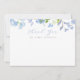 Ett vackert platt bröllop-tack som du får med ett gräns överst av ljusblå vild blomma och ett tack i blått skript. Anpassa med namn i grått serif typsnitt.