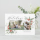 Det här helgdag med elegant har handmålade, delikata röda blommor och vackra greer som ram två foton. Det står "Glad helg" i ett elegant-skript.