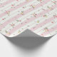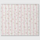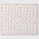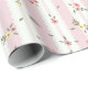 Fintvätt av Rosa med Blommönster Wrapping Papper Roll - blommönstret med delikata blommar för rosa och gult med grönt löv som är spridd över en bakgrund av rosa och vitt rand. Det vita rand är kantat av ett dekorativt, snöre-liknande gräns.