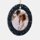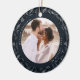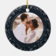 Den här vackra helgdag har ett cirkelformat, centrerat foto med skräddarsydd namn och marin jul i enkel typografi. Den här eleganten har en mörk vinterblått och vitt botaniskt mönster. Ett perfekt sätt att fira jul bröllop!