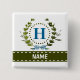 En ömtålig ivandeandning med en blå stripe-buk läggs över en färsk vit bakgrund. Bröllop har en lämplig design med monogrammet "H" i blått. Knappen kan vara personlig med valfri namn på banderollen grönt. Designtips: För det teckensnitt som visas här användor du alla versaler för namn.