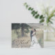 Det här känsliga svarta kalligraferingsljusets överlägg är tack vare ditt kort perfekt för ett modernt bröllop. Den romantiska minimalistiska designen har fin och svart typografi av eleganten i bild med ett rent och enkelt utseende. Anpassa kortets baksida med namn och ett tackmeddelande. Du kan också lämna tackmeddelandemallsavsnittet tomt om du vill att skrivan ska förses med en personlig på varje kort när de har anlänt. Dessa kort kan användas för en bröllop, möhippa eller vilken speciell händelse som helst.