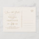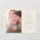 Den här ömtåliga fotot av guld och kräm sparar datumet på vykortet är perfekt för ett modernt bröllop. Den romantiska minimalistiska designen har en underbar och elegant champagne gyllene gult-typografi på en elfenbensgräddbakgrund med ett rent och enkelt utseende.