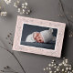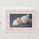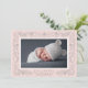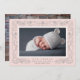 Ett berikande botaniskt gräns i blekens rosa och elegant grått ramar ditt favoritfoto av det nyfödda vågrät i detta vackra födelsemärke för nyfödd bebis flickor. Anpassa med din nya ankomsts namn, födelsestatus och namn under fotot. Lägg till ett andra foto på baksidan om du vill, eller ta bort exempelfotot om du vill visa ett mönster av och vitt rand.