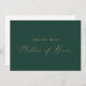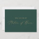 Detta känsliga guld- och grönt-frieri kort är perfekt för ett modernt bröllop. Den romantiska minimalistiska designen har fin och elegant champagne gyllene gult-typografi på en frammarsch grönt med ett rent och enkelt utseende. Anpassa kortet med namn på bruden och hedersatsen. Anpassa kortets baksida med ett meddelande om personlig.
