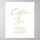 Denna känsliga kalligrafi av bröllop-kaffet pub poster i guld är perfekt för ett modernt bröllop. Den romantiska minimalistiska designen har en vacker och elegant champagne gyllene gult-typografi på vit bakgrund med ett rent och enkelt utseende.