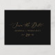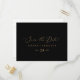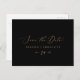 Den här känsliga guld och den svarta sidan sparar datumet på vykortet är perfekt för ett modernt bröllop. Den romantiska minimalistiska designen har en vacker och elegant champagne gyllene gult-typografi på en svart bakgrund med ett rent och enkelt utseende.