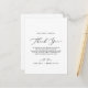 Det här känsliga kalligrafkortet är perfekt för ett modernt bröllop. Den romantiska minimalistiska designen har fin och svart typografi med elegant på vit bakgrund med ett rent och enkelt utseende. Ställe de här korten vid bord-inställningen för var och en av dina gäster på bröllopsmottagningen. Anpassa kortet med namn och ett speciellt tack.