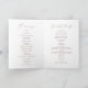 Detta känsliga kalligrafi av ro guld som är uppfällt i bröllopsprogram är perfekt för ett modernt bröllop. Den romantiska minimalistiska utformningen har en vacker och dammig elegant ro rosa-typografi på vit bakgrund med ett rent och enkelt utseende.