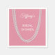 Långa pärlsträngar på en säker rosa-bakgrund dekorerar denna klassade Möhippa Napkin. Detta ingår i Möhippan Delikat Rosa Pearls. Om du behöver ytterligare objekt för evenemanget kan du kontakta oss på prettyfancyinvites@gmail.com med din förfrågan.