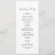 Denna känsliga svarta kalligrafi bröllop i programmet är perfekt för ett modernt bröllop. Den romantiska minimalistiska designen har fin och svart typografi med elegant på vit bakgrund med ett rent och enkelt utseende. Ta med namn i bruden och trimmen, datum och plats för bröllop, tack, serviceordning, brudens sida och ett minnesmärke "i kärleksfullt minne" som tillval.
