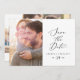 Det här känsliga svarta kalligrafifotot som sparar datumkortet är perfekt för ett modernt bröllop. Den romantiska minimalistiska designen har fin och svart typografi med elegant på vit bakgrund med ett rent och enkelt utseende.