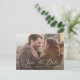 Det här känsliga vågräts fotoöverlägg sparar datumet för vykortet är perfekt för ett modernt bröllop. Den romantiska minimalistiska designen har fin och elegant vit typografi på en mörk som täcker fotobakgrund med ett sofistikerat utseende.