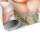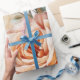 Snygg presentförpackning av Vintage Peach Ro på en grå bakgrund. Perfekt för bröllop eller möhippa.