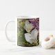 Fintvätt av vita blommor med guldfärgad ton gräns kaffemugg