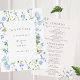 Elegant platta bröllopsprogram med en delikat blommigt vattenfärg ram i blått och vitt. Anpassa med dina ceremonier i grått.