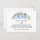 Baby Shower-design med delikat vattenfärgsblått, blommigt-delare på vitt, blommigt-delare; på baksidan en blåa blommor-krans i hjärtform. Använda Anpassa verktyg om du vill lägga till information, ändra typsnitt, teckensnittets färg. Om du vill ha matchande artiklar kan du gå till Mina vattenfärgsblommor Baby Shower Collection.