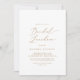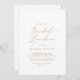 Denna känsliga lunchinbjudan till kalligrafi i guld-möhippan är perfekt för en modern möhippa. Den romantiska minimalistiska designen har en vacker och elegant champagne gyllene gult-typografi på vit bakgrund med ett rent och enkelt utseende.