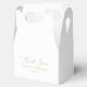 Detta känsliga guld-kalligrafi-tack är perfekten för ett modernt bröllop. Den romantiska minimalistiska designen har en vacker och elegant champagne gyllene gult-typografi på vit bakgrund med ett rent och enkelt utseende. Anpassa förmånslådan med ditt namn och datum.