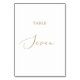 Detta känsliga bord 7-bordsnummer i guld är perfekt för ett modernt bröllop. Den romantiska minimalistiska designen har en vacker och elegant champagne gyllene gult-typografi på vit bakgrund med ett rent och enkelt utseende. Kortet skrivs ut på framsidan och baksidan (dubblan). Andra bordsnummer i samlingen säljs separat.