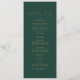 Detta känsliga program för grönt av kalligrafi i guld är perfekt för ett modernt bröllop. Den romantiska minimalistiska designen har fin och elegant champagne gyllene gult-typografi på en frammarsch grönt med ett rent och enkelt utseende. Ta med namn i bruden och trimmen, datum och plats för bröllop, tack, serviceordning, bröllopsfest och ett minnesmärke "i kärleksfullt minne" som tillval.
