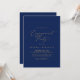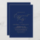 Denna känsliga inbjudan till marin förlovningsfest i guld är perfekt för en modern förlovning-händelse. Den romantiska minimalistiska designen har fin och elegant champagne gyllene gult-typografi på en marin blå bakgrund med ett rent och enkelt utseende.