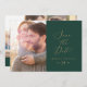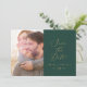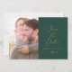 Det här känsliga fotot för kalligrafi av guld-grönten som sparar datumkortet är perfekt för ett modernt bröllop. Den romantiska minimalistiska designen har fin och elegant champagne gyllene gult-typografi på en frammarsch grönt med ett rent och enkelt utseende.