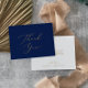 Tack vare detta känsliga guld-marktjockt är perfekten för ett modernt bröllop. Den romantiska minimalistiska designen har fin och elegant champagne gyllene gult-typografi på en marin blå bakgrund med ett rent och enkelt utseende. Anpassa kortets baksida med namn och ett tackmeddelande. Du kan också lämna tackmeddelandemallsavsnittet tomt om du vill att skrivan ska förses med en personlig på varje kort när de har anlänt. Dessa kort kan användas för en bröllop, möhippa eller vilken speciell händelse som helst.