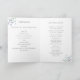 Elegant vikta bröllopsprogram med en delikat blommigt vattenfärg ram i blått och vitt. Anpassa med dina ceremonidetaljer i grått och ett tack på baksidan.