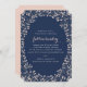 Vänner och familj i inbjudan för att duscha bruden för att vara med vår söta chic blommigt inbjudningskort för möhippa, med en rik marin bakgrund och din möhippa-information som är framtagen av en ömtålig andning av baby utandning i blek rosa och grädde. Elegantens kalligrafiskript och klassiska blockeringsbokstäver ger den här inbjudan ett feminin- och elegant-utseende.