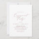 Denna känsliga kalligrafinbjudan till förlovningsfesten ro guld är perfekt för en modern förlovning-händelse. Den romantiska minimalistiska utformningen har en vacker och dammig elegant ro rosa-typografi på vit bakgrund med ett rent och enkelt utseende.