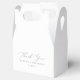 Detta känsliga silver-kalligrafi-tack är perfekten för ett modernt bröllop. Den romantiska minimalistiska designen har fin och elegant silver grått-typografi på vit bakgrund med ett rent och enkelt utseende. Anpassa förmånslådan med ditt namn och datum.