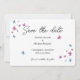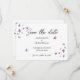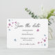 Låt din kärlek flyga med det vackra Spara datumkortet, som är försedd med små pastellfjärilar i rosa och blått. Med en skarp vit bakgrund ställer du in designen viskare elegans och oskuld - perfekt för vår, trädgård eller romantiskt temat bröllop.