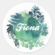 Vattenfärgad bladbakgrund och grönt med "Fiona"-text i mitten