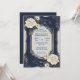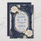 Gör ett häpnadsväckande första intryck med den här inbjudan till marinblått och Silver-Blommigt-bröllop. Den här inbjudan är utformad för elfenbensformad blommigt i elegant och är sofistikerad och charm, perfekt för tidslängd och elegant bröllop