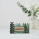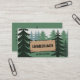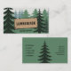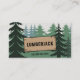 A business card depicting a fir forest in the background and a wooden sign. It could be suitable for carpentry, woodworker and lumberjack or forestry services (tree removal and pruning, firewood, stump removal, etc.).