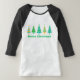 En modern geometrisk utformning av fem fir träd i teal, turkos och gyllene gult. Det står "God jul" i matchande grönt.