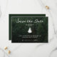 Ett rustiskt Spara datumkort med en vacker skogsfotobakgrund från Destei, accentuerat med en enkel fir träd silhuette. Eleganten "Spara datum" topparna utformningen, följt av datumet bröllop och en rad där gäster bjuds in till parets skogsland bröllop. Grund noterar att en formell inbjudan kommer att följa. Baksidan har en djup bakgrund med motsvarande träd-silhuett och anpassbart utrymme för initialer och bröllop. Perfekt för älskare som planerar utomhus, skog eller skogsmark bröllop.