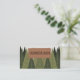 A business card with a forest of fir trees illustration and a wooden sign in the foreground. Perfect for carpenter, woodworker and lumberjack services (tree removal and pruning, firewood, stump grinding and more). It comes with full contact and list of services on the back!