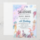 Låt oss fira! Dyk in i ett hav av kul med denna söta födelsedagsinbjudan med skaldjur, perfekt för ocean-, sjöjungfru- eller strandtema fester. Med lekfulla snigelskal, pastellfärger och anpassningsbar text sätter denna inbjudan tonen för en magisk födelsedagsfest under havet. Anpassa med ditt barns namn, ålder, festdetaljer och mer för att skapa vågor bland dina gäster!
