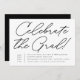 Moderna inbjudningar till studentfesten med "Fira Grad!" visas i ett handskrivet svart skript. Anpassa inbjudningskorten för svartvit studentfest till student namn, studenten och party. Inbjudan återgår till visning av en solid svart bakgrund med utrymme för ytterligare text eller foton. Inbjudningskorten för studentfest av trendiget är perfekt för både högskolan och högskolan i studenter.