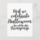 Vi firar Halloween och säger ett roligt citat med humor som "Först firar vi Halloween" och allt annat nonsens. Perfekt Happy halloween 31a oktober för ge som gåva till far, mor, son, dotter, syster, bror, mor, far- och morföräldrar, barn, pojkvän, flickvän, make, hustru, morbror, lärare, familj.