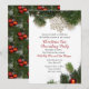 Gör denna julfestliga inbjudan personlig med din egen text. Välj ett teckensnitt och textfärg som passar din festlokal. Denna festliga inbjudan har en ram av julgransgrenar med julgransprydnader