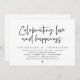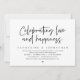 Meddela er lyckliga framtid i stil (Celebrating Love and Happiness) med vår moderna samtida eleganta bröllopsinbjudan för vigselceremoni. Vår inbjudan till bröllopsfrukost är perfekt för par som har beslutat att vigas i det tysta och vill ha en fest för att fira sin union. Med sin sofistikerade men ändå lekfulla design kommer denna inbjudan säkert att sätta tonen för en oförglömlig händelse.