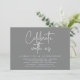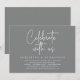 Modern svart script-tema, bröllopsinbjudningskort (Fira med oss). Det är perfekt för din bröllopsfest / efterbröllopsfirande. Lägg till dina detaljer i matchande mörkgrå font / bokstäver.